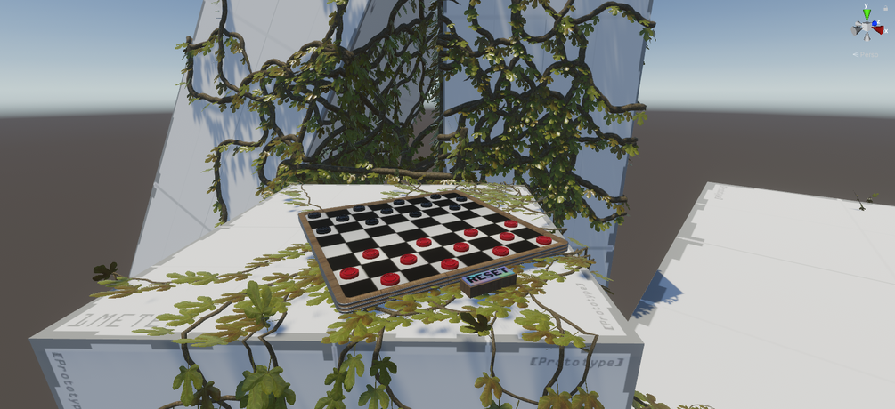 Checkers deck with snapping grid and reset button to respawn pieces.